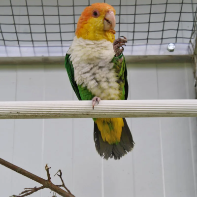 En règle général, les Caïques sont des vraies clowns avec leurs acrobaties et leur facultés de faire des petits bonds sur le sol, ou de jouer allongés sur le dos. Les Caïques sont câlins, d’autres un peu plus indépendants. Ils sont très curieux et très gourmands.