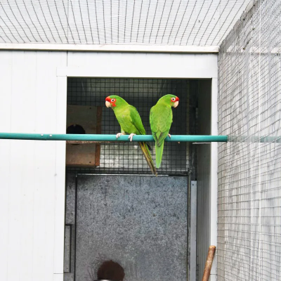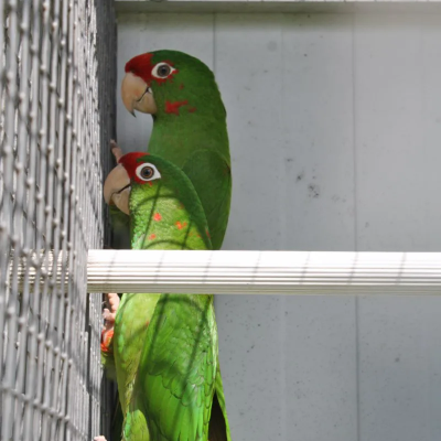 Les Conures à face rouge sont des cousines des Conures mitrées. Elles ont le même caractère mais niveau gabarit, elles sont un peu plus petites et plus fines.
