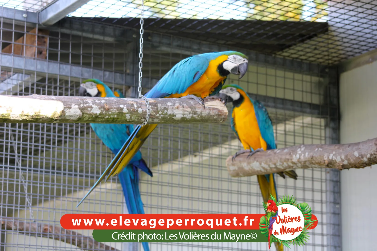 Les Aras bleus poussent des cris rauques et puissants et ils ont un bec puissant pouvant casser les noix les plus dures.