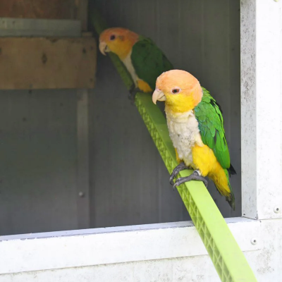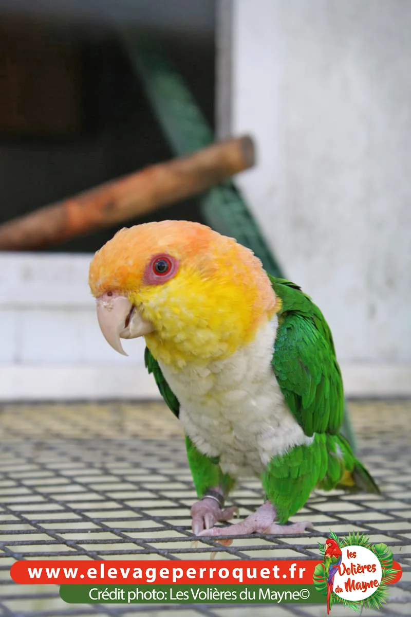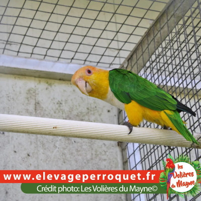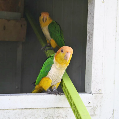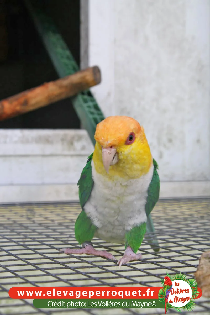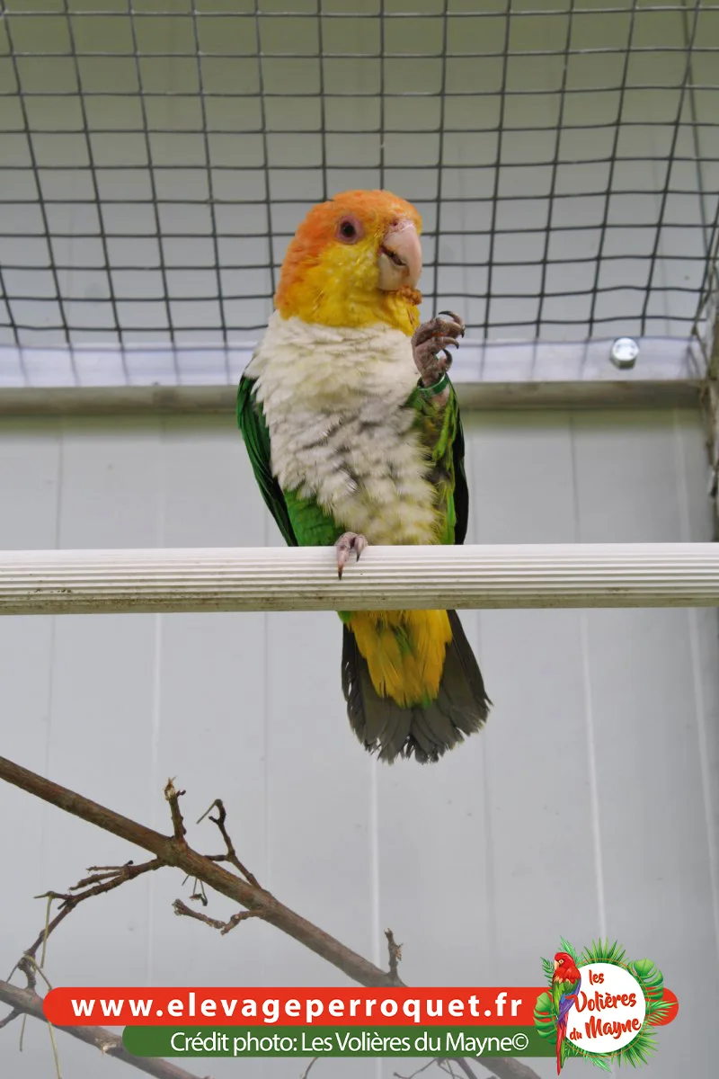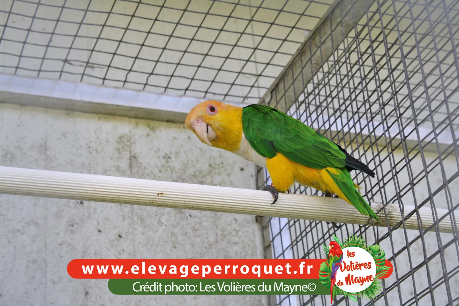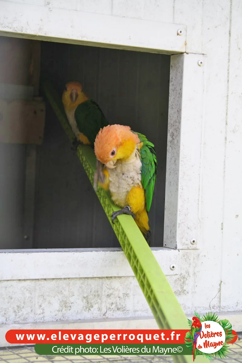 Les Caïques à cuisses jaunes (Pionites leucogaster xanthomeria)Les Caïques à cuisses vertes (Pionites leucogaster leucogaster)