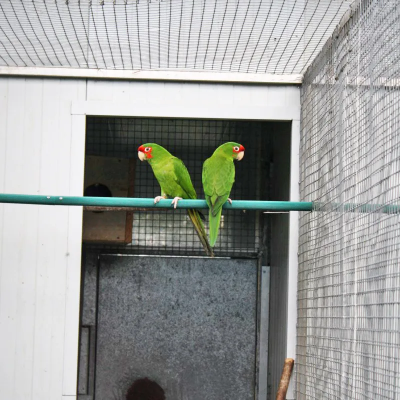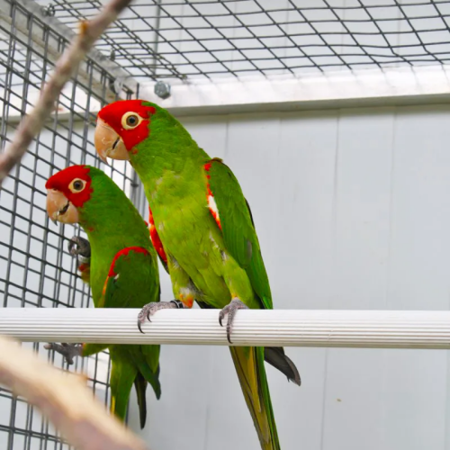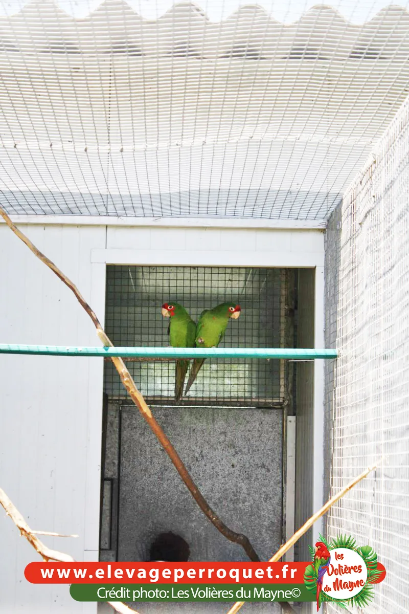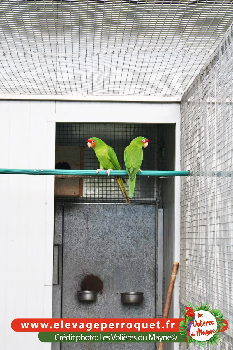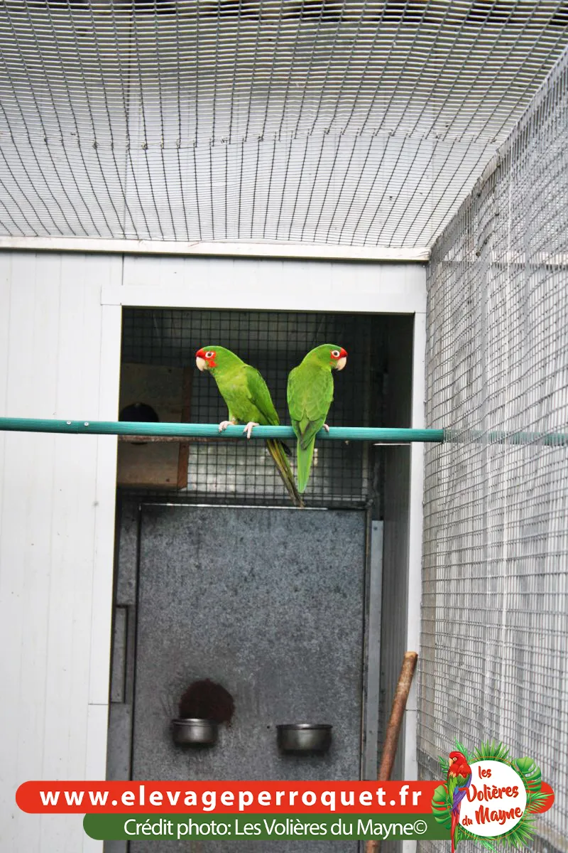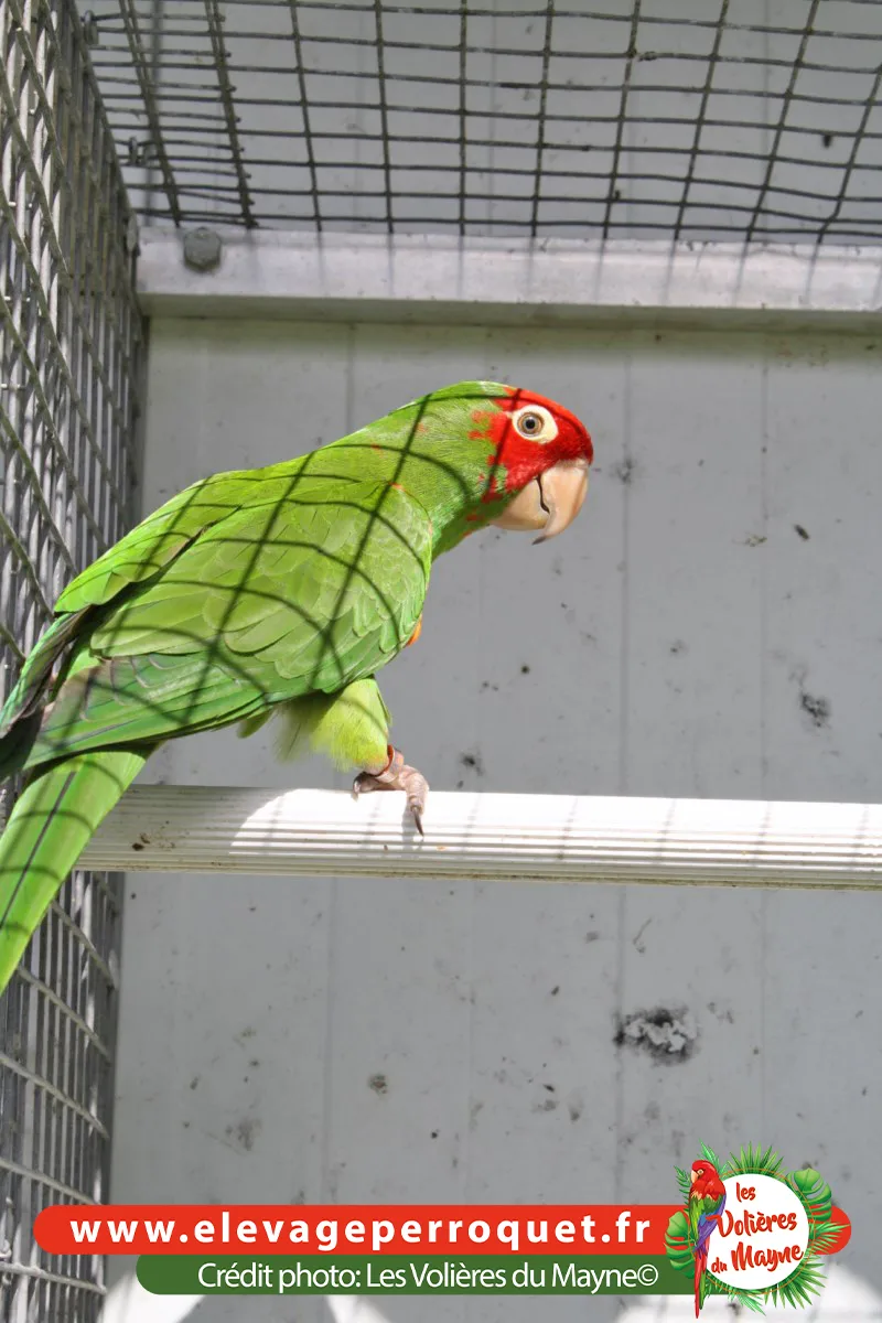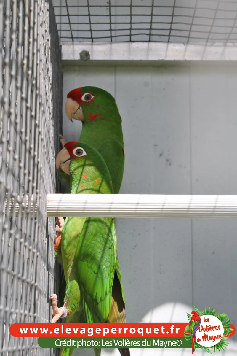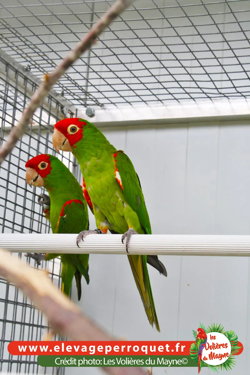 Les Conures à face rouge sont des cousines des Conures mitrées. Elles ont le même caractère mais niveau gabarit, elles sont un peu plus petites et plus fines.